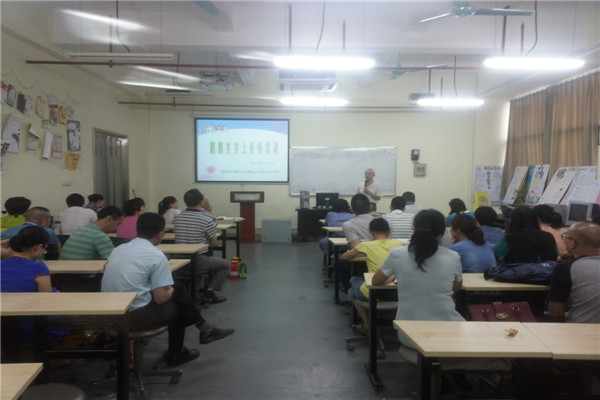 接下来就是孔发弟教授用他那生动有趣的肢体语言,很有激情地给大家上了一堂精彩的培训课。课程围绕“踏踏实实上好每堂课”分别从“爱岗敬业是课堂教学的基础”、“热爱学生是课堂教学的前提”、“ ‘授之于人渔’是课堂教学的核心 ”、“提高自身职业素质是课堂教学的灵魂”这四个方面跟在座所有教师作了一番交流。现场学习气氛浓烈,大家都在交流中共同学习进步。