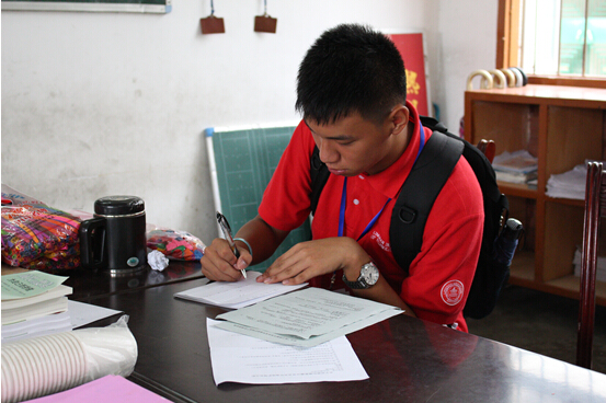 2015-7-20 雨,早上5点30分,清脆的闹钟声唤醒了所有志愿者。新的一天开始,也说明有新的任务。天空下着连绵小雨并没有能阻止调研组的工作,调研组成员采访了石桥小学校长高校长,了解石桥小学的状况和周围的环境,并设计调查问卷。
