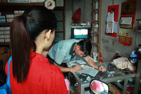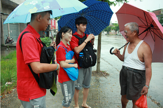 下午2点30分,天还下着雨,调研组所有成员依然决定外出到学校周边的民居和商铺进行问卷调查。