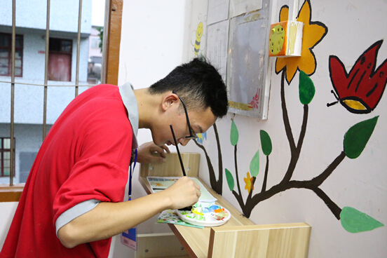 对课室的美化,组员们以手绘的方式描绘出属于孩子们的青春图画。