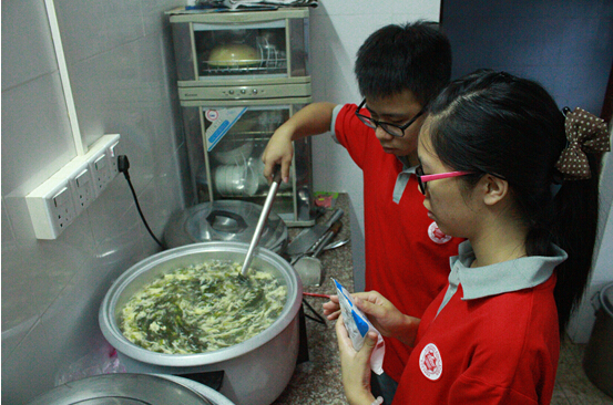 回到石桥小学后,后勤组向老师报道了此特殊情况。老师冒雨出去为筑梦团队买回了一些蔬菜,并和后勤组成员一起忙碌午饭。在老师的帮助下,后勤组顺利的在午饭时间到来前,完成今天的午饭任务。