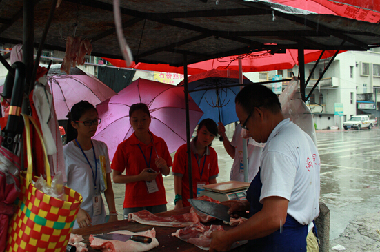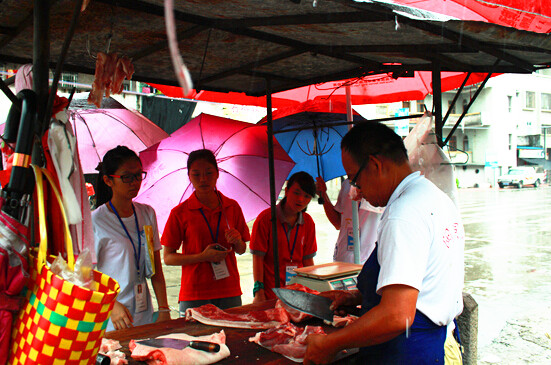 20号是筑梦团来到石桥小学的第二天,后勤组成员们早上六点便已经起床,为筑梦团队的早餐忙碌着。七时整,已经基本熟悉了厨房工作的后勤组成员们有条不紊的煮好了面条和紫菜汤。筑梦团队吃完丰富的早餐后,立刻马不停蹄的开始开幕式工作准备。而正打算外出买菜的后勤组因为开幕式的开始,延迟了外出买菜的工作。迟迟出发的后勤组在开幕式结束后冒雨立即出发,但始终还是错过了买菜的最佳时机。所幸的是还有一个猪肉档剩余的猪肉恰好足够解决后勤组一天的肉类需求。
