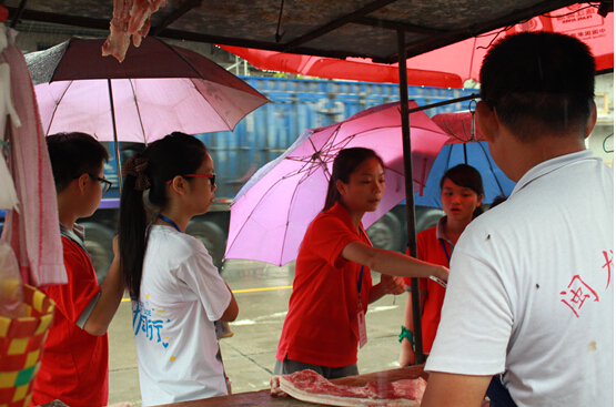 经管学院新闻部讯(记者)开营仪式的开始延迟后勤组外出买菜,三下乡教师冒雨外出买菜助后勤部解决午饭问题。