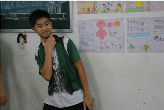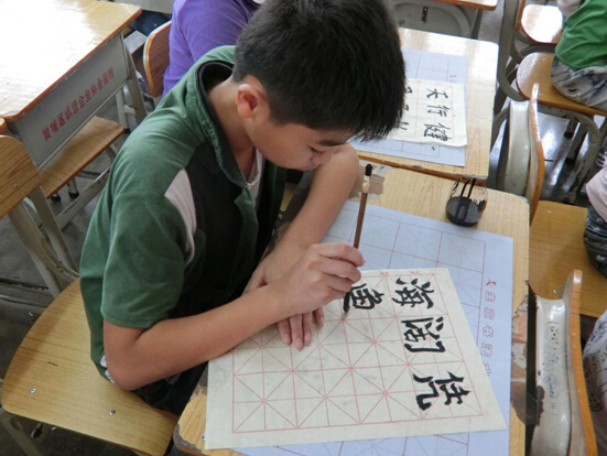 下午两点,支教组成员开始进行今天书法课的课程,与其他小朋友相比,初次上书法课得他握笔写字竟有一种行云流水,浑然天成的感觉,写出来的字也很漂亮。那小小的脑袋中仿佛蕴藏着一个充满能量的小宇宙,让他对这些课程都游刃有余。