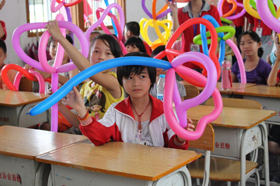 今天绘彩组的课程有书法,手语舞,创意气球。上午的课程开始了,首先上的是手语课,吉林虽然开课第三天才来上课,但他一点也不怕生,稚嫩的脸上一直洋溢着笑容,与周围的小伙伴相处融洽,并且很快的跟他们打成一片。