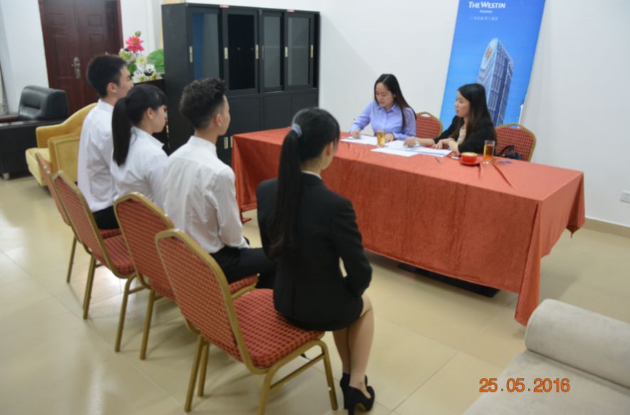 2016年5月25日下午星期三,在众目期盼的等待中,经济管理学院清远校区酒店管理专业14级37名在校生终于迎来了2016-2017学年第一学期为期半年的酒店定岗实习面试官的审核。本次酒店定岗实习的37名同学将全部前往广交会威斯汀酒店、长隆酒店、广州日航酒店以及广州科寓投资管理有限公司(香雪国际公寓)等四家广州知名酒店展示实习,其实习岗位分别为中西餐厅、前厅、房务、票务、预定中心、会展中心、酒水接待等多个部门。