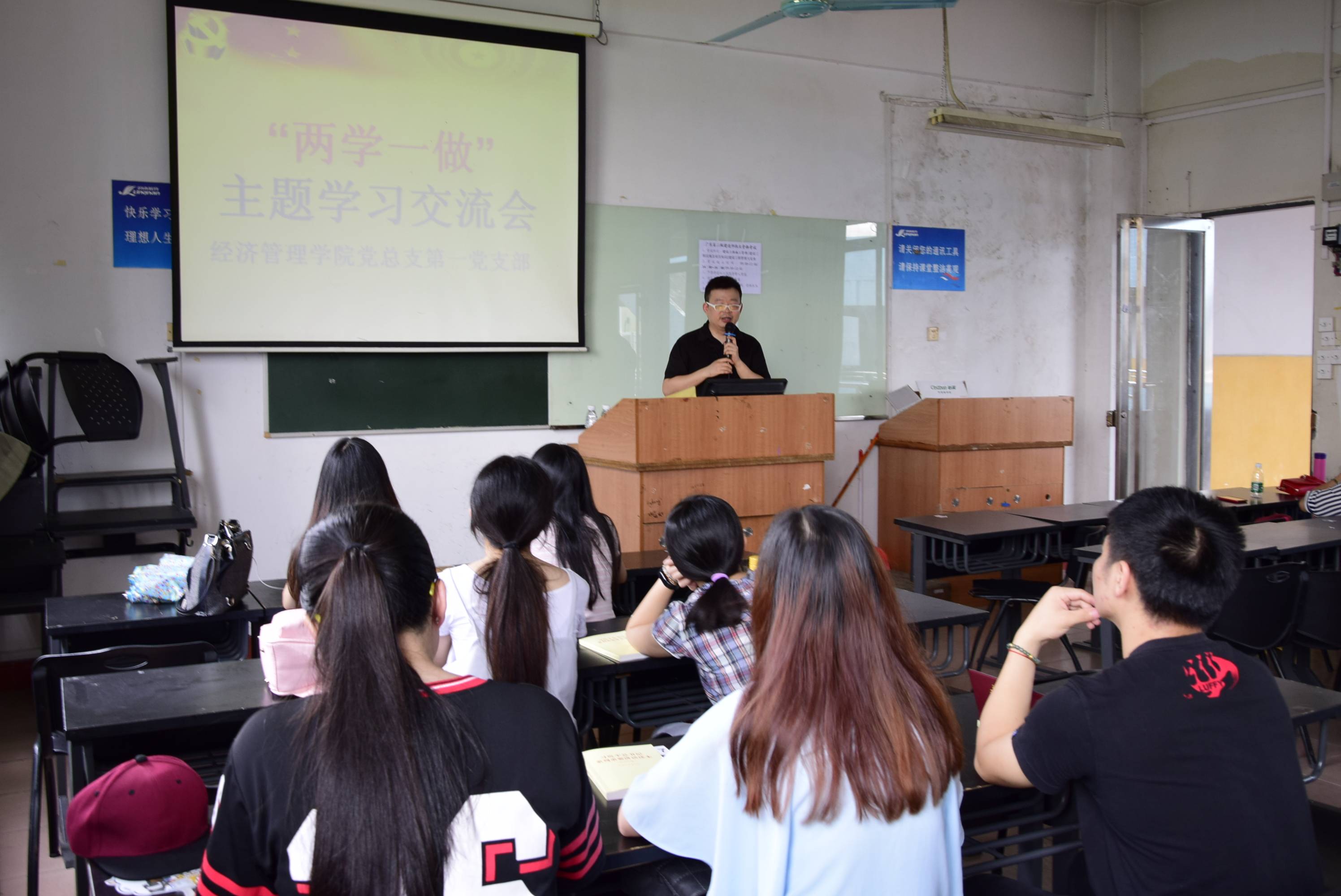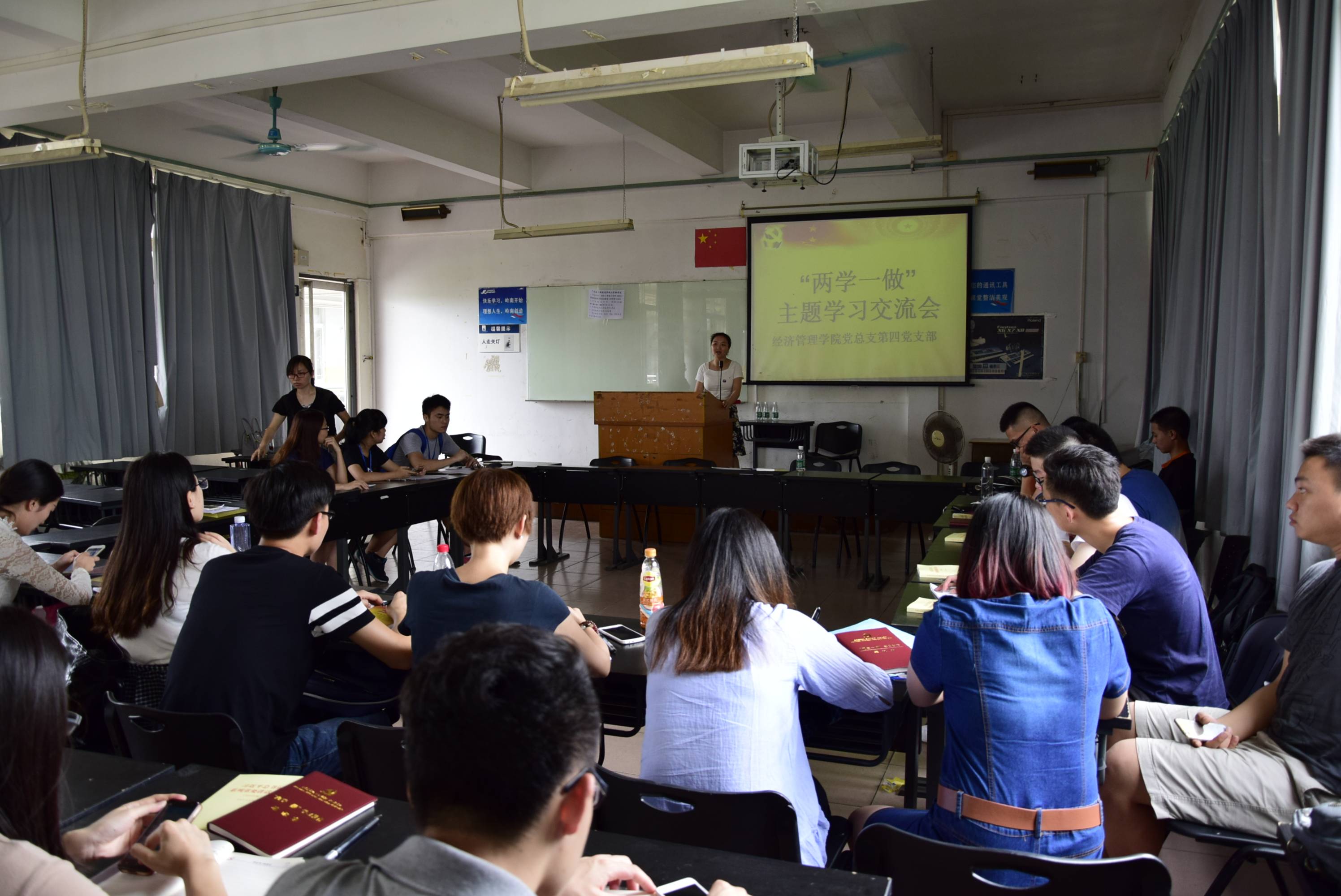5月27日下午,为提高我院师生党员和入党积极分子的综合素质,加强各位党员同志的党性修养,贯彻落实党的“两学一做”精神,严格按照学校党委关于“两学一做”学习教育的实施方案要求,经济管理学院党总支组织学院各支部于第一教学楼五楼顺利举行“两学一做”主题学习交流会。各支部绝大部分师生党员都参加了此次会议。