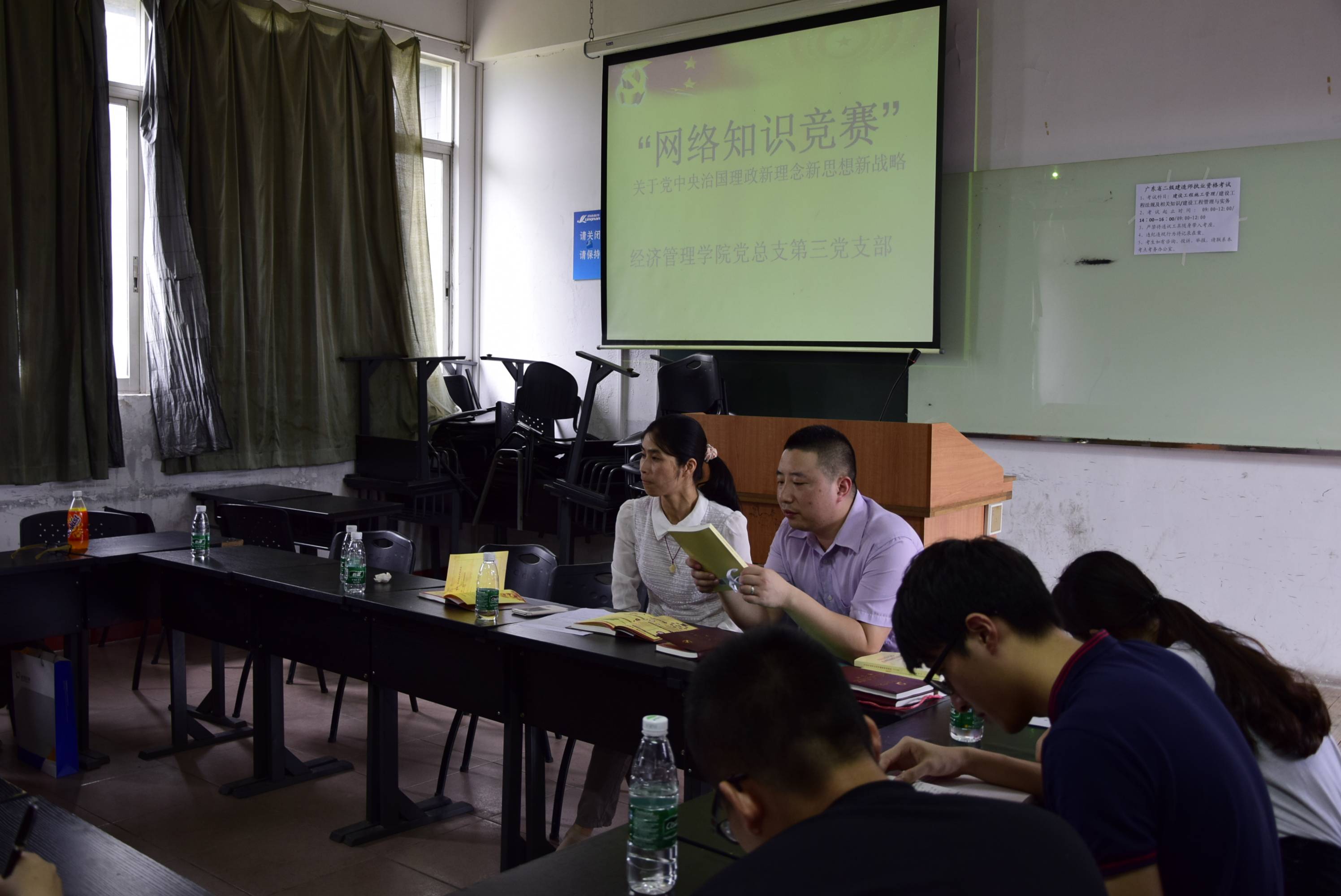 党总支副书记沈阳老师和党总支组织委员谭紫娟老师巡查了各支部会场,他们充分肯定了大家的态度和积极性。表示希望大家将此次会议的精神落实到“做”上去,多关注多学习大学生党员的先进事迹。同时也希望各支部每月或每个季度都开展会议讨论学习时政热点问题,关心国家时政动态,将“两学一做”精神贯彻落实到每一位党员的思想与行为上。