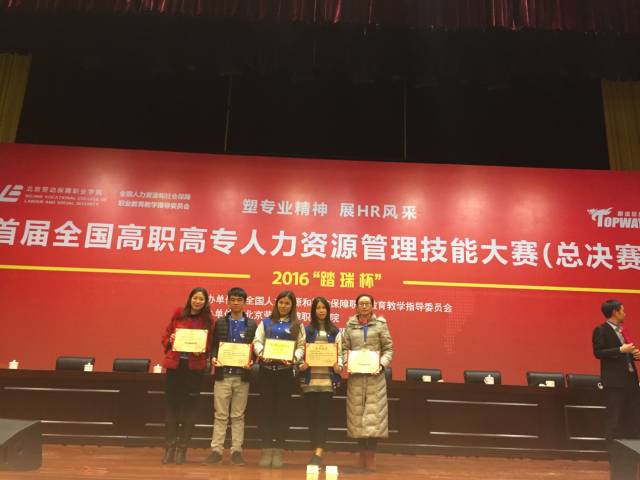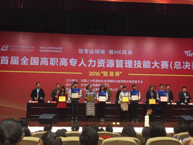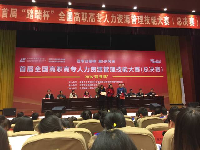 2016年12月3日,由中国人力资源和社会保障职业教育教学指导委员会主办,北京劳动保障职业学院承办,上海踏瑞计算机软件有限公司提供全程技术支持的2016年首届“踏瑞杯”全国高职高专人力资源管理技能大赛(总决赛)在北京劳动保障职业学院成功举行。来自全国18个省市,48所职业院校的48支代表队、240余人参加了开幕式和当天的比赛。此次大赛我院由卿青、熊薇两位指导教师率领14人力资源管理专业三名学生参赛。经过一整天的激烈角逐,最终我院代表队“守望者”团队在本次全国人力资源技能大赛中获得二等奖。