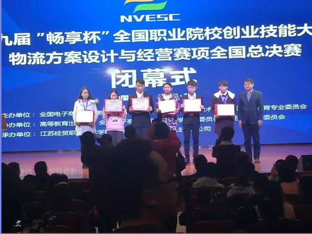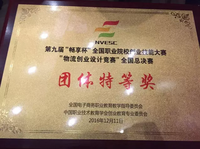 2016年12月9日至11日,由全国电子商务职业教育教学指导委员会和中国职业技术教育学会创业教育专业委员会联合举办的“第九届全国职业院校创业技能大赛”在江苏经贸职业技术学院举行。由翟树芹老师、何静老师指导的经济管理学院物流管理专业14物流管理1班和15物流管理1班4名学生共同组成岭南农村双向物流团队,代表广东岭南职业技术学院与来自国内各职业院校竞争,在教师的指导下,创业计划方案“农村电商双向物流”喜获团体特等奖。