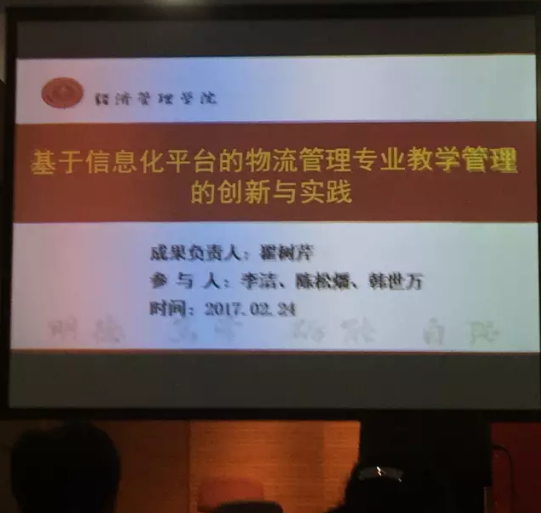 翟树芹老师基于对物流管理专业教学管理的探索和研究,并以主题为“基于信息化平台的物流管理专业教学管理的探索与实践”向评委和所有教师展示了物流管理专业在教学上所取得的佳绩。物流管理专业以“一平台,多用途”的理念,用迁移的思维,将本专业的专业核心课程、专业综合训练课;专业技能考证内容、专业技能竞赛信息、专业建设管理全以课程建设的思维,建成功能各异的平台,实现了教学的全面信息化,对教学资源建设、教学方式改革、人才培养质量提升方面起到促进作用。各评委对这种做法和模式给以充分的肯定,并表示这种做法为今后DQP框架下人才培养的信息化系统开发提供了参考,具有一定的借鉴意义。