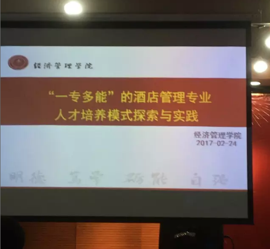 经济管理学院酒店管理专业许宝利老师,基于酒店管理专业的人才培养模式多年的探索和研究,酒店管理专业构建了“一专多能”的人才培养模式,并展示了近年来的取得的教学成果。一专:以酒店管理专业核心部门能力为学生的重点培养内容,突出学生的技能操作水平和岗位管理能力;多能:基于培养提升人才培养质量为目标,以英语为重点培养能力,以茶艺、调酒、咖啡作为特色能力培养项目,以“创新、创业、创意”作为重要培养内容,最终形成培养高技术高技能的复合型人才的目标。