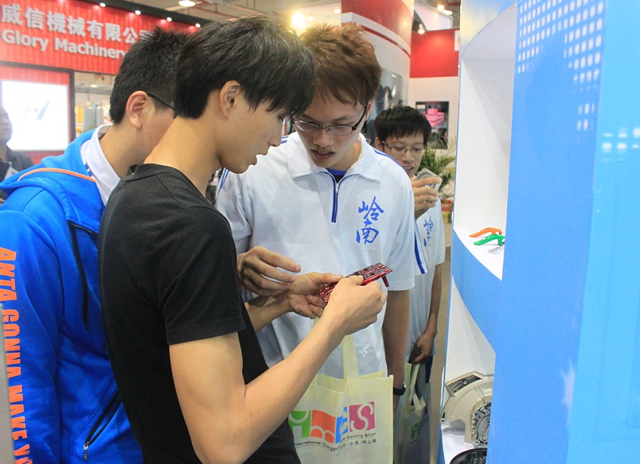 随后,学生有组织地参观了压铸企业展示的各类铸造产品,并在老师和展会技术人员的指导介绍下学习了产品的生产工艺和应用。期间,学生每到一个展位发现有兴趣的产品都会用手机拍下来记录,作为学习专业知识的素材,特别是来到展会的“最佳铸件比赛评审展示专区”,同学们大开眼界,见识到了当前最顶尖技术的制造工艺精品。