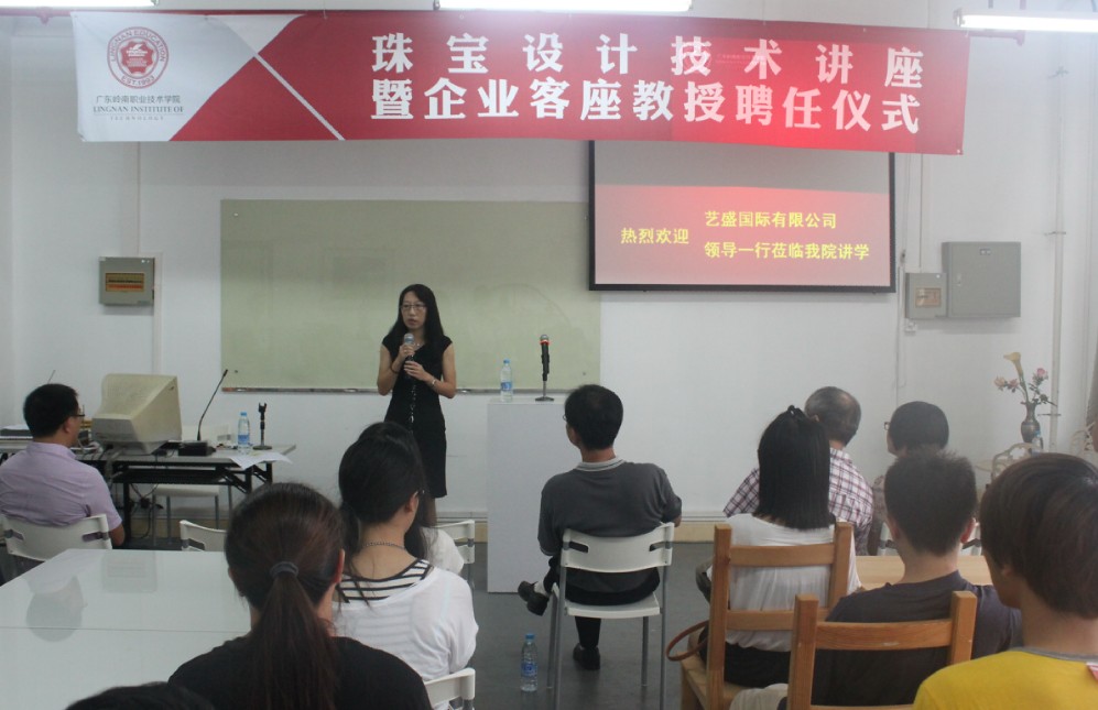 王锦红院长在活动上代表学院对艺盛国际有限公司及企业代表的到来表示热烈的欢迎和衷心的感谢,指出“无论在国外或者国内,珠宝行业都有比较大的发展前景和人才需求缺口,所以根据产业的需求学院设立了这个专业方向,同时也得到了企业界的大力支持。”