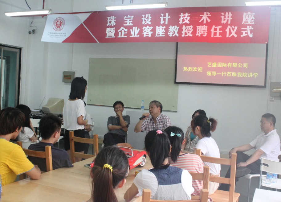 6月27日上午,珠宝设计技术讲座暨企业客座教授聘任仪式在岭南科技中心举行。现代制造学院、岭南香港铸业学院院长王锦红博士,艺盛国际有限公司姜总,技术总监袁广祥先生等企业代表一行以及学院工业设计专业教研室老师出席了活动。