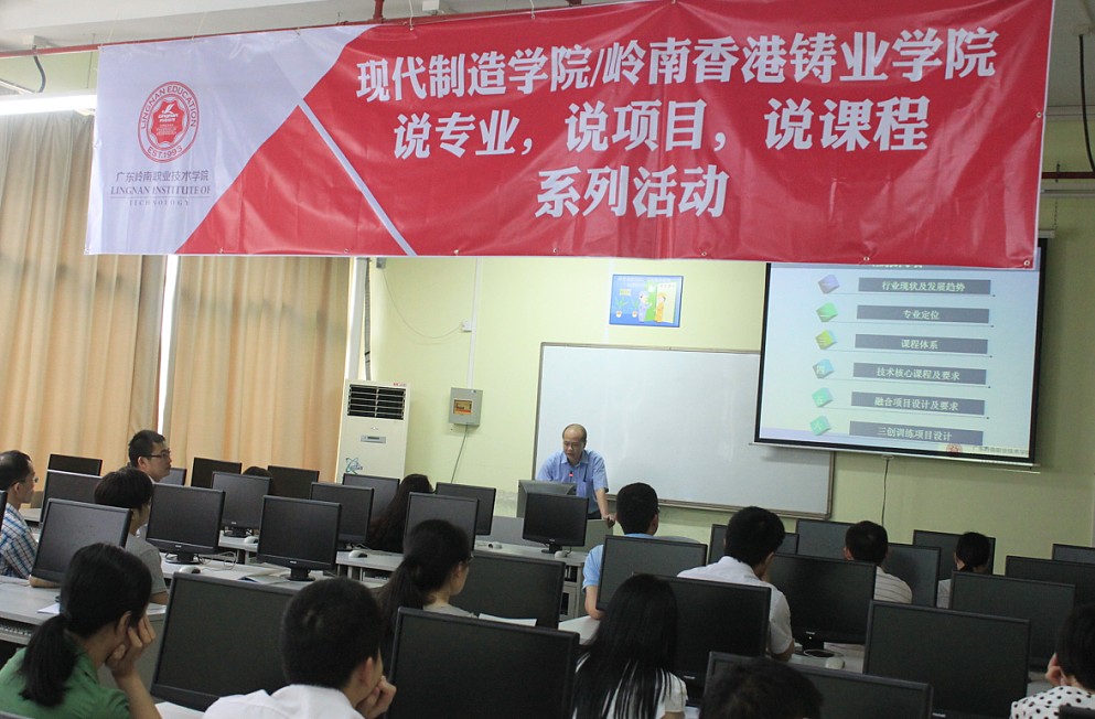 5月16日,学院在岭南科技中心实训机房举行说专业、说项目、说课程系列活动。各专业教师分别上台围绕本专业的建设情况、课程设置、人才培养等方面开讲。在座的老师们各抒己见、热烈讨论,为专业的建设提了不少宝贵的建议。