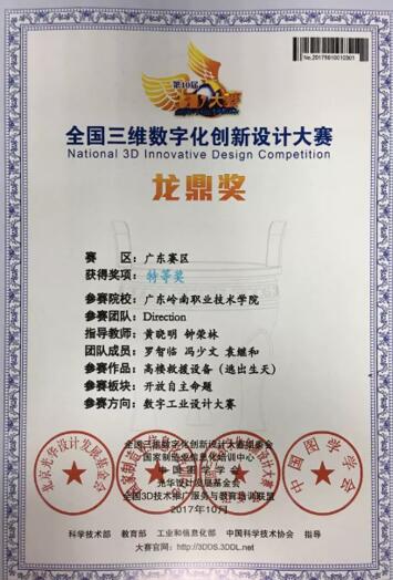 功夫不负有心人,2017年10月,现代制造学院、岭南香港铸业学院过五关斩六将最终在全国3D大赛广东赛区脱颖而出,揽获龙鼎杯特等奖等奖项。此外,Direction团队的“高楼求援设备”作品将代表广州赛区参加全国赛。下面让我们一起见证与分享这份喜悦吧!