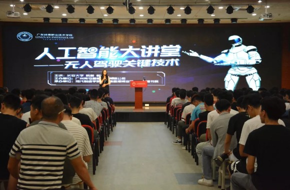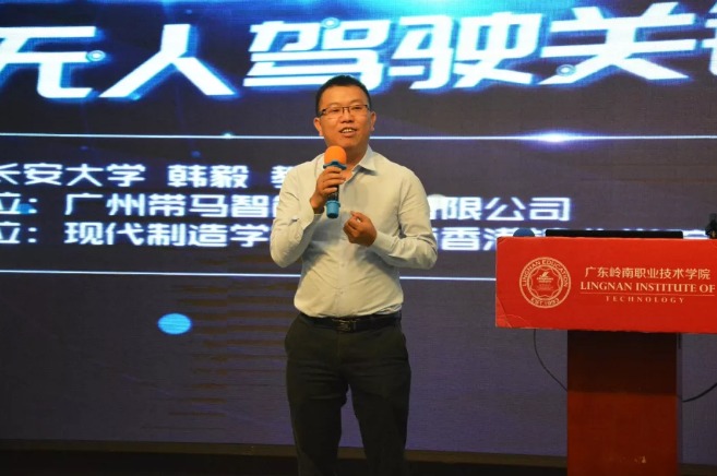 活动由长安大学(国家首批“双一流”、"211工程"、"985工程优势学科创新平台"建设高校)博士生导师、全国生产力促进中心智能网联汽车专家韩毅副教授主讲。广州带马智能科技无人驾驶项目团队奚炎先生、何志长先生,广东岭南职业技术学院清远校区综合办许振平主任,现代制造学院田晶院长、周云副书记,以及现代制造学院岭南香港铸业学院清远校区全体教师学生共同参加了本次活动。