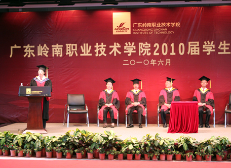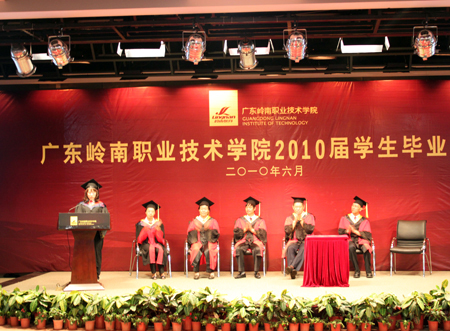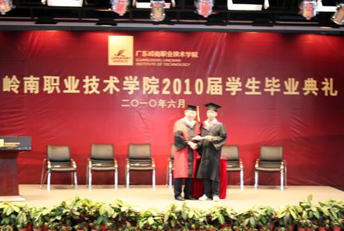 岭南职院校长助理兼教务长郧教授宣读了准予2007级各专业的714名同学毕业的决定,校长助理学务长程翠英副研究员宣读了2010届优秀毕业生评选结果。岭南职院授予钟慧等21名学生“毕业生标兵”荣誉称号;授予陈国轮等70名学生“优秀毕业生”荣誉称号。