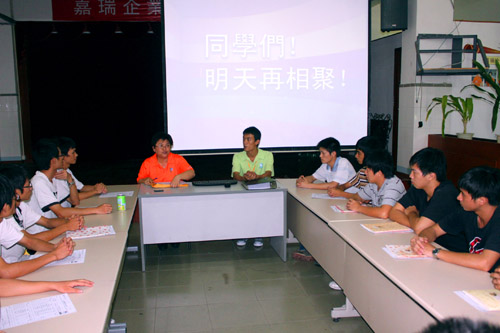 8月26日下午,企业人力资源及行政总经理余慧珊和嘉瑞企业学院主管黄继泳在嘉瑞企业学院会议室对学生在企业实习的情况做了简要的总结。