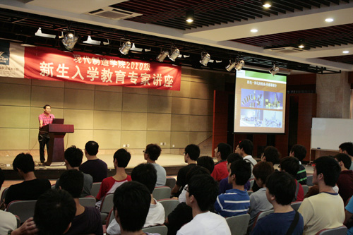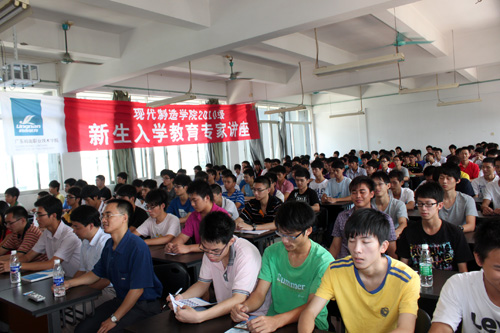 新生入学教育除了各专业老师给同学上专业教育讲座之外,还特意邀请各专业的精英来跟同学分享行业经验。