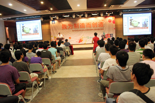 当天下午,全体老师,2010级新同学,一起见证了08、09级同学获奖,在去年一个年度里,我们学院陆续举行了手工绘图大赛、创新设计技能大赛、亚运礼品设计、全国技能大赛广东省选拔赛、中日韩模具交流展示大赛。这些大赛都是根据学院的专业特点以及结合同学们的兴趣而开设的,通过这些一系列的比赛,涌现出了一大批非常优秀的作品,也发现同学们具有非常扎实的专业基础功底,同时也拥有非常优秀的创意设计能力。