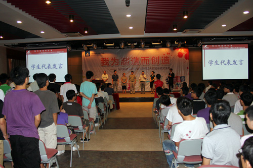 接下来由09级学生代表、获奖代表以及10级新生代表分别发言并分享经验。学生代表们激情风趣的演讲让在场不时爆出热烈的笑声和掌声。