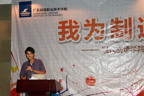 大会首先由林勇老师介绍学院常规的专业比赛情况,包括岭南科技文化节中的“金点子大赛”,现代杯创新设计大赛、专业基础课的“手工制图比赛”、目的是为了培养学生创新设计能力、综合设计能力、协作精神以及动手能力。接着王达斌老师介绍了国家级技能大赛以及回顾学院校外参加各种比赛的获奖情况。