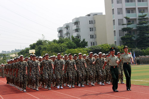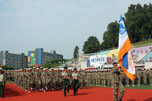 嘹亮的口号,整齐的步伐,昂扬的斗志。9月29日上午,“岭南沙场秋点兵”—2010级新生军训阅兵暨总结表彰大会在学院足球场隆重举行。