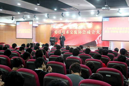为传播模具行业最新资讯和新技术,培养同学们专业兴趣,拓展模具行业知识面,加强与广州市模具工业协会紧密对接,成为校企沟通的桥梁的目的,2011年11月11日上午,现代制造学院模具技术交流协会成立仪式在图书馆五楼报告厅隆重举行。广州市模具工业协会会长、广东岭南职业技术学院执行校长钟燕锋、副校长李峻等领导及现代制造学院模具专业师生参加了本次大会。