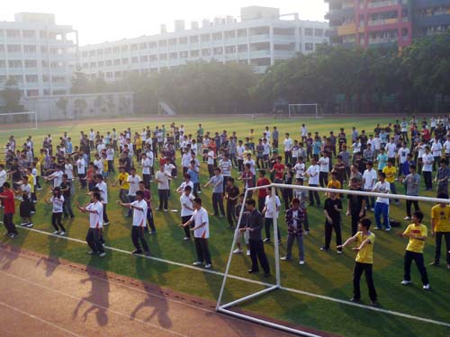4月14日上午,制造学院10级全体学生继续在足球场进行晨读晨练活动,摆起了壮观的“太极阵”,同学们热情高涨。 上午6:50,来自我院12个班的同学在足球场上顺次排开,展开大型的方形列队,在口令的统一指挥下,太极拳晨练正式开始。 据了解,制造学院的晨读晨练活动已经在4月初正式开锣,10级的全体学生根据自身的实际情况,有计划地参加晨读晨练活动,这一举措对制造学院学风建设起到了良好的促进作用。