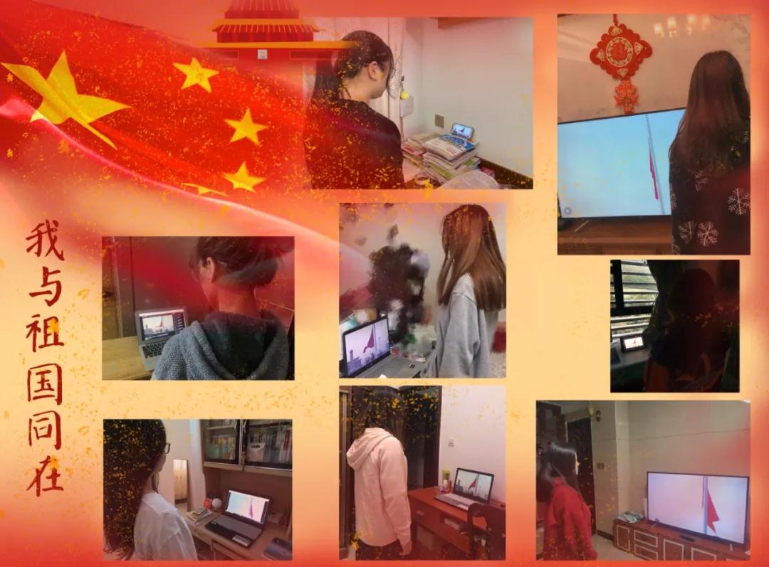 “请所有同学起立,行注目礼,奏唱国歌。”主持通过屏幕隔空传播着铿锵的话语,屏幕前的全体师生身姿挺拔,神情庄严,面向屏幕中缓缓升起的五星红旗,高声跟唱国歌。