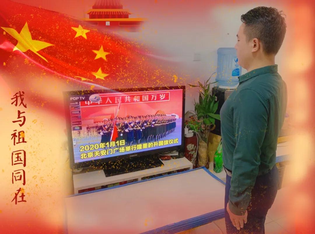 升旗的地点从学校的操场,移到了家中。矗立在我们面前的,也从升旗台换成了手机或电脑屏幕。伴随着国歌声起,看着电子设备屏幕中缓缓升起的国旗,同学们身姿挺拔、神情肃穆地面向国旗庄严敬礼。