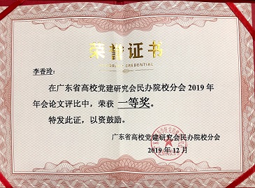 近日,广东省高校党建研究会民办院校分会公布2019年民办高校党建年会论文获奖名单。其中,我校马克思主义学院李香玲老师的党建论文《基于导师制的高职院校思政课“12345”工程构建与实践--以广东岭南职业技术学院为例》荣获一等奖!