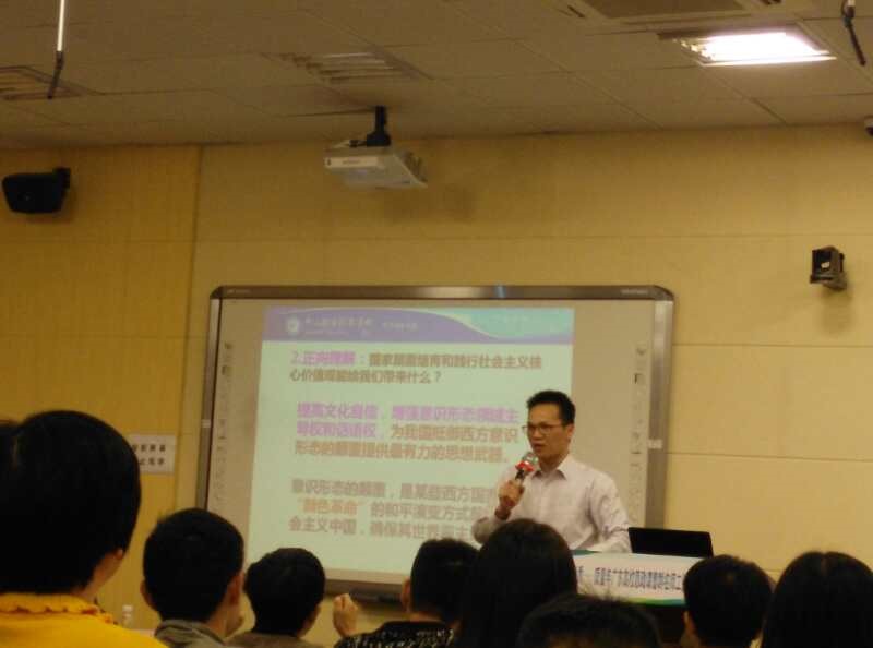 活动旨在学习贯彻党的十九大精神,进一步落实教育部高校思想政治理论课教学质量年专项工作要求,将习近平新时代中国特色社会主义思想深度融入高校思想政治理论课教学,促进新时代高校思想政治理论课教学改革和教学创新,提升大学生学习马克思主义理论的获得感。9名广东高校思政课曹群名师工作室第一期学员参与本次教学展示活动,省教育厅思想政治工作与宣传处处长袁本新作动员讲话,副处长倪熙总结,广州番禺职业技术学院党委副书记、校长何友义致欢迎辞,教育部“长江学者”特聘教授,华南师范大学马克思主义学院院长陈金龙教授等专家学者现场指导点评,广州番禺职业技术学院马克思主义学院院长、广东省高校思政课教学名师曹群教授主持,80多名来自广东高职院校的一线思政课教师现场观摩,60名广州番禺职业技术学院在校生参与师生互动。