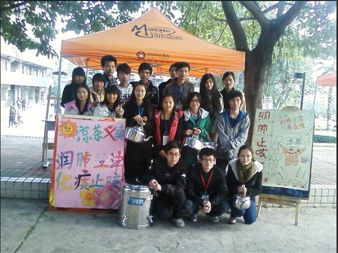 2011年12月9日,伴随着校运会的隆重登场,医药健康学院的凉茶基地为了让全体师生在这寒冷的冬季拥抱到一丝温暖,特在东区足球场门前进行凉茶义卖活动。