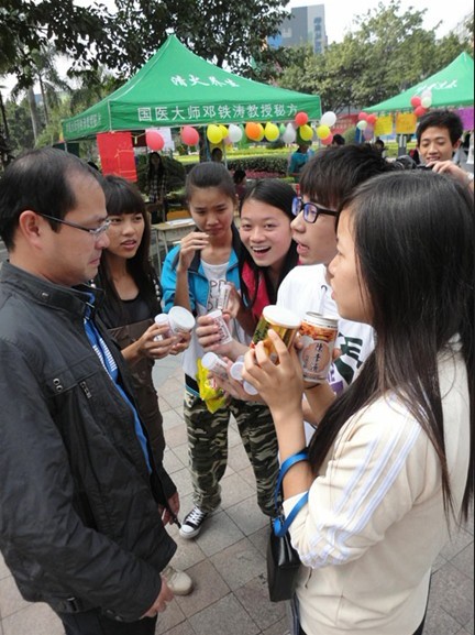 据悉,举办营销大赛的目的是为了提高同学们的销售能力和社会实践能力而举办的,由医药健康学院的老师联系厂家,直接发产品到达学院,再由同学们抽签获得各种产品的经营权。