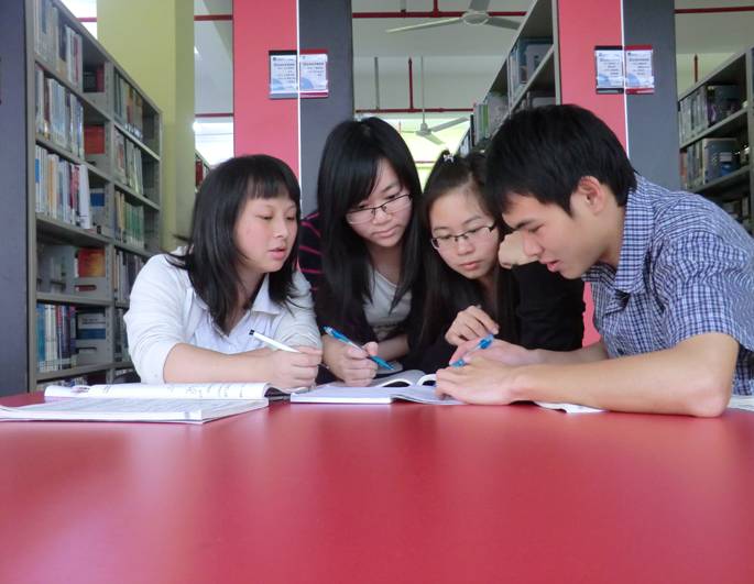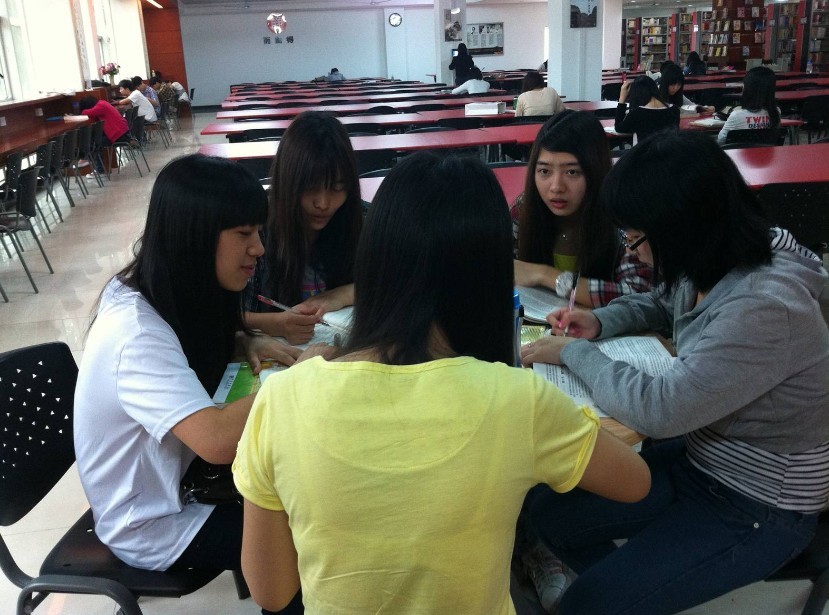 互帮互助小组在图书馆交流学习