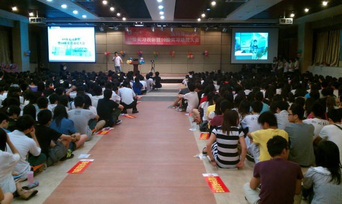 随后,曾银珠老师语重心长地告诫10级学生要准确定位,自重自爱,努力工作,尊重同事和客户,学做人做事的道理,并时刻提高警惕,保障自身安全。而李岩副院长现场给同学们讲解了实习的目的和任务,并向同学们展示了09级实习生的可喜的实习情况,医药健康学院的实习率和专业对口率都非常高,其中专业对口率高达83%,在医院工作的同学占了总数的27.84%。