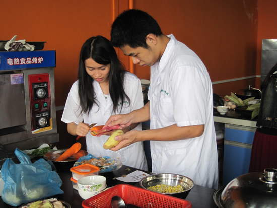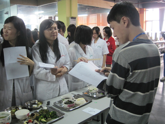 2012年11月15下午13:00,由医药健康学院举办,由营养与食品监测协会承办的第四届食谱编制与烹饪大赛在科技中心七楼实验室701B举行,本次食谱编制烹饪大赛旨在让学生在实践中提高技能,真正把理论知识落到实处。由崔淑莲老师,学生代表担任本次大赛的评委。