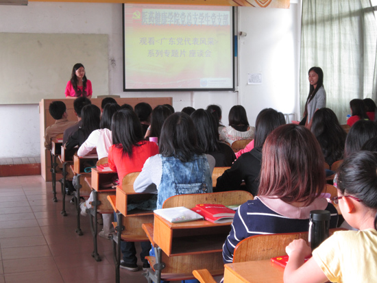 大会由支部书记许碧琴主持,许老师宣读相关的文件后,全体与会人员观看十八大开幕式,聆听胡锦涛书记的总结报告,跟着又观看了《广东党代表风采》系列专题片,随后各党员积极发表他们观看视频后的感想,并结合工作和学习实际,谈自己的感受,以及如何为学院的学风建设、宿舍管理作努力,充当好的表率,也有同学结合自身的志愿服务谈感受。