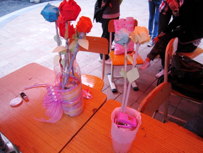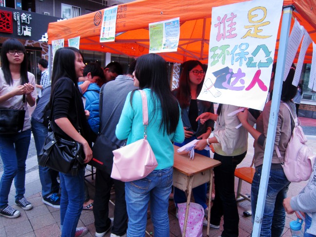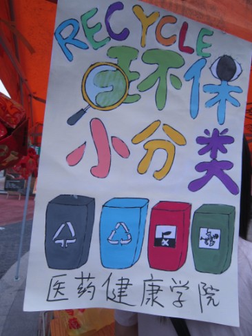 为学习雷锋,争做环保达人,2013年3月28日,医药健康学院实践部在素食馆门前开展以“环保”为主题的活动。