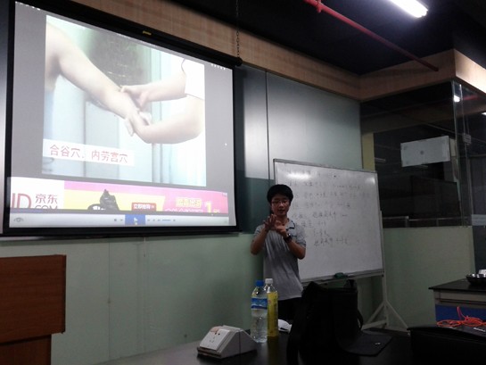 本次培训详细介绍了按摩的主要方法:如摇法、抖法、穴位法等,罗同学还根据自己的多次社区服务的亲身经历,讲解了服务社区老人们需要注意的相关事项。同学们认真地听着解说并观看视频,还以两人一组进行模拟练习及实操。