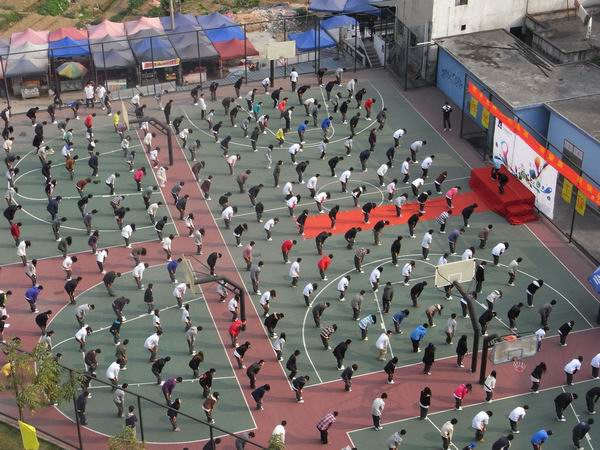 在管理学院陈壮寿和白平两位辅导员的带领下,现场600多名师生一起跳起了第三套大众健身操,让现场的气氛迅速升温。我们相信以后的阳光工程活动定会开展得如火如荼。