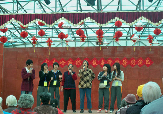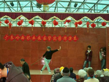 同学们的到来如同三月的春风,为老人家送来了欢声笑语。公寓里200多名老人和工作人员观看了我们送上的文艺表演。同学们表演的幽默小品《原来如此》,以其幽默风趣的情节和夸张到位的演出把场下的老人逗得哈哈大笑。演出活动中,不少老奶奶、老爷爷也兴致勃勃地加入到表演的行列,有一位老奶奶演唱R&B风格的《入住友好老年公寓就是福》这首歌曲外,还把手中的拐杖当场耍起来,气势十足。场内观众都竖起了大拇指!