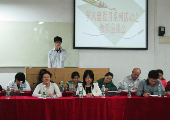 2010年4月22日下午14时整,我院自律委员会在3603举行了“学风建设月”之教学座谈会。医药健康学院杨凤琼副院长、李岩助理、教学督导、教研室主任、辅导员及各班级学生代表参加了本次座谈会。