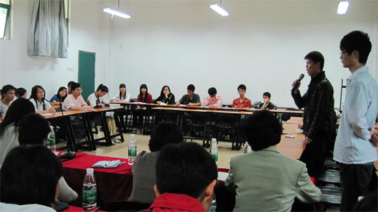 随后,各班代表就学风建设问题进行了踊跃地发言,很多同学积极发表意见,如有些学生不按时作息、迷恋网络游戏、学习目标不明确、有些任课老师上课与学生没有充分交流、课程安排不太合理、自修室没有位置、营养班某科目与专升本的科目完全相同、晨读和晨练没显著效果、关于义工的具体定义不明晰等等。杨凤琼副院长和李岩助理都一一解答了同学们的疑问。