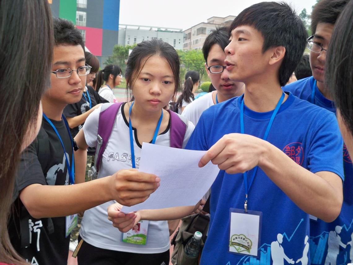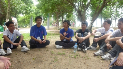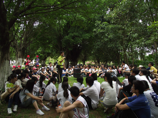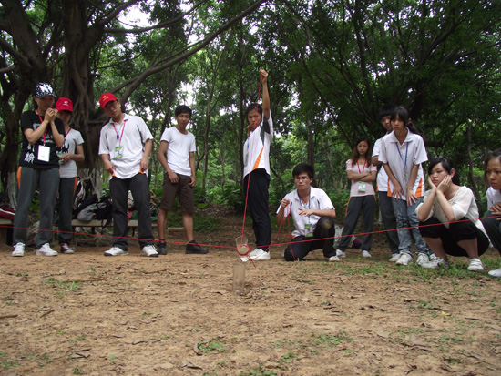 116名学生干部分成了六个小组,上午八点在学校东区篮球场进行各组风采展示,展示的过程中,个个都精神抖擞,蓄势待发。八点半左右启程去番禺,并相继组织了“团队拉练”、“四脚蜈蚣”、“南水北调”等活动,在各类竞技比赛中,队员都密切合作、动作机敏、生机勃勃,展现出大学生的活力,活动过程中虽然有失败的,但他们都能积极面对过失,总结经验,从中发现团队合作的重要性。其中各组组长都展现出卓越的领导能力,领导组员攻破难关。