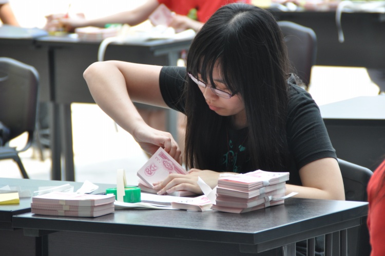 据会计教研室主任郎冬梅老师介绍,点钞大赛是针对商学院会计专业学生的点钞速度、准确度的比赛,比赛根据点钞手法的不同分为两个部分:第一部分为“单指单张”,第二部分为“多指多张”。成绩根据选手的速度,准确度和纸钞摆放整齐度决定。
