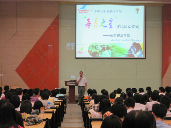 为响应李峻副校长提出的学生管理工作应“努力转型,创新发展,培育特色”的号召,医药健康学院始终秉承“开拓创新,锐意进取”的精神,不断探索学生管理的新方法,有效促进医药健康学院的学风,医药健康学院特于2011年9月1日下午2点,在一教东阶梯隆重举行了医药健康学院“每月之星”评比启动仪式。